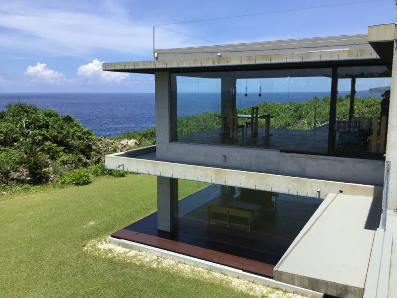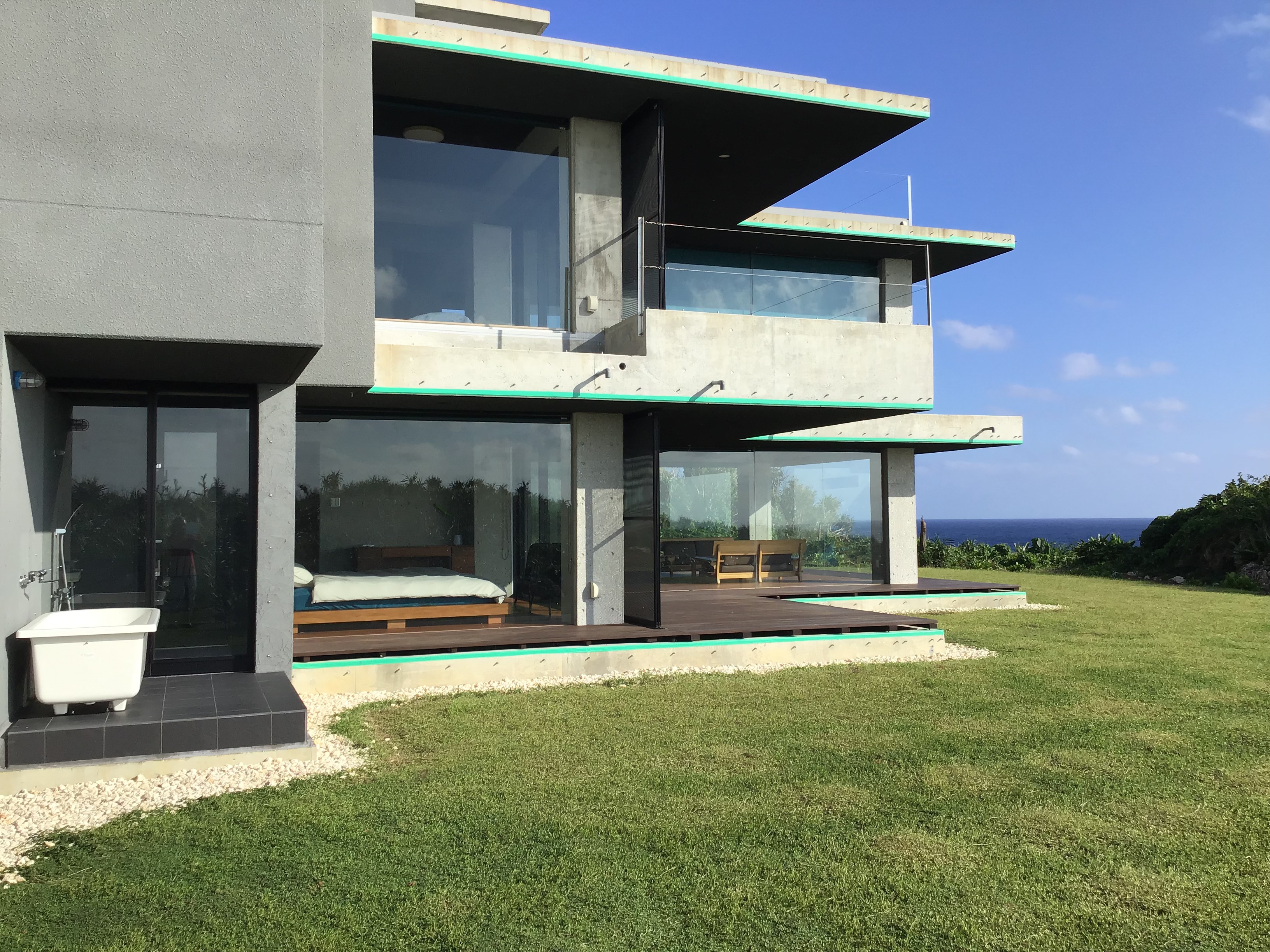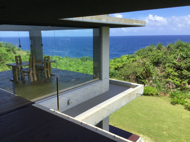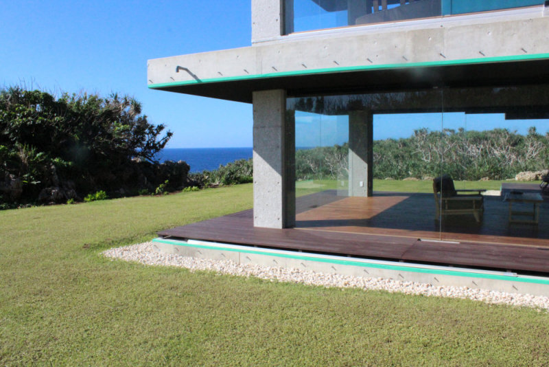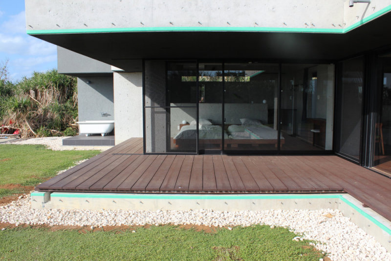 | 2階ウッドデッキからリビング、その先は広大な海 |